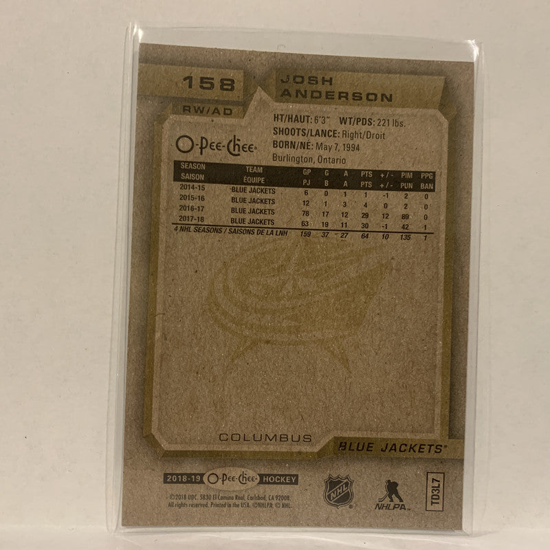 #158 Josh Anderson Columbus Blue Jackets 2018-19 O-Pee-Chee Hockey Card A2E