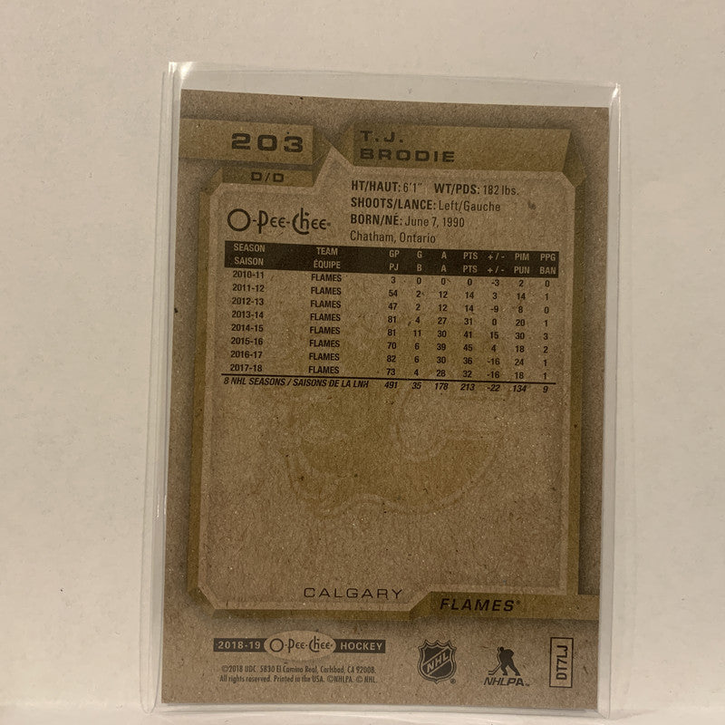 #203 T.J. Brodie Calgary Flames 2018-19 O-Pee-Chee Hockey Card A2E