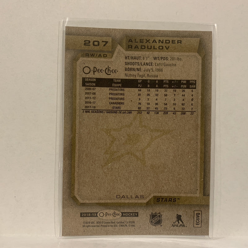 #207 Alexander Radulov Dallas Stars 2018-19 O-Pee-Chee Hockey Card A2E