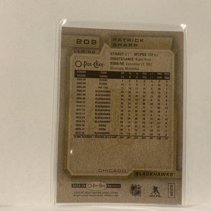 #209 Patrick Sharp Chicago Blackhawks 2018-19 O-Pee-Chee Hockey Card A2E