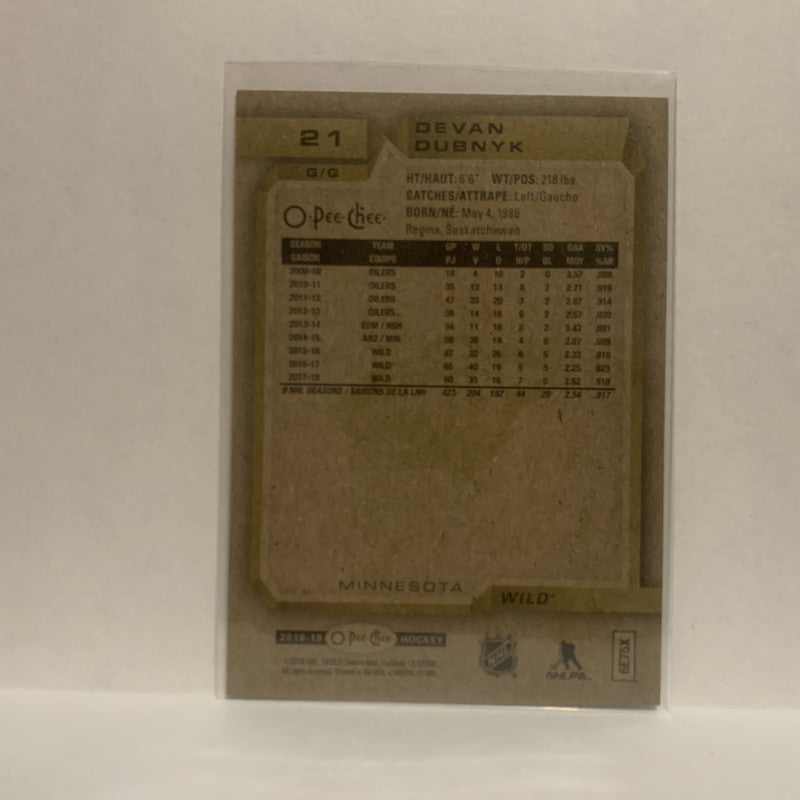 #21 Devan Dubnyk Minnesota Wild 2018-19 O-Pee-Chee Hockey Card JR