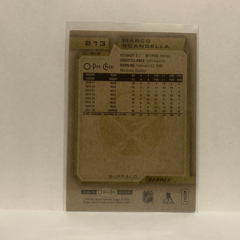 #213 Marco Scandella Buffalo Sabres 2018-19 O-Pee-Chee Hockey Card JT