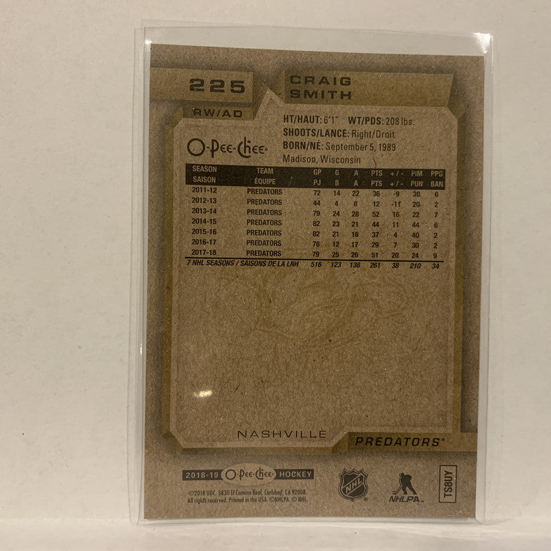 #225 Craig Smith Nashville Predators 2018-19 O-Pee-Chee Hockey Card A2E
