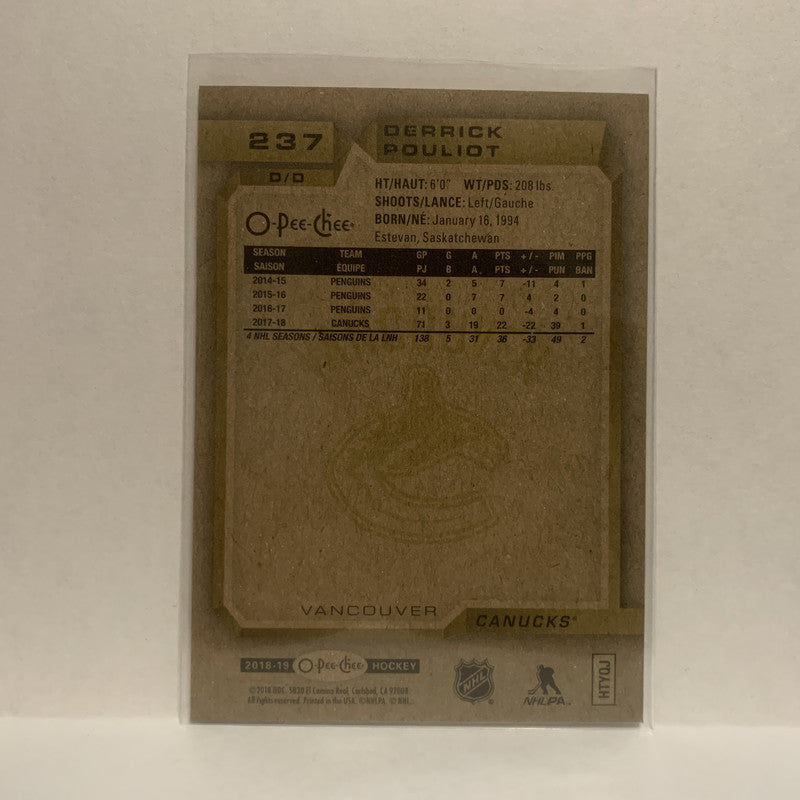 #237 Derrick Pouliot Vancouver Canucks 2018-19 O-Pee-Chee Hockey Card JP