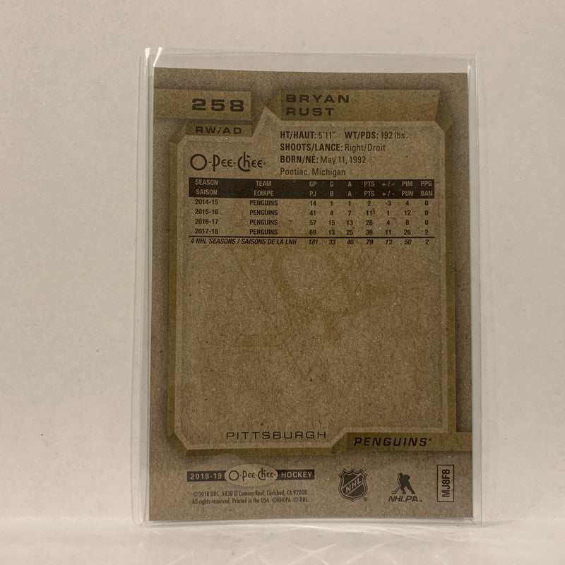#258 Bryan Rust Pittsburgh Penguins 2018-19 O-Pee-Chee Hockey Card A2E