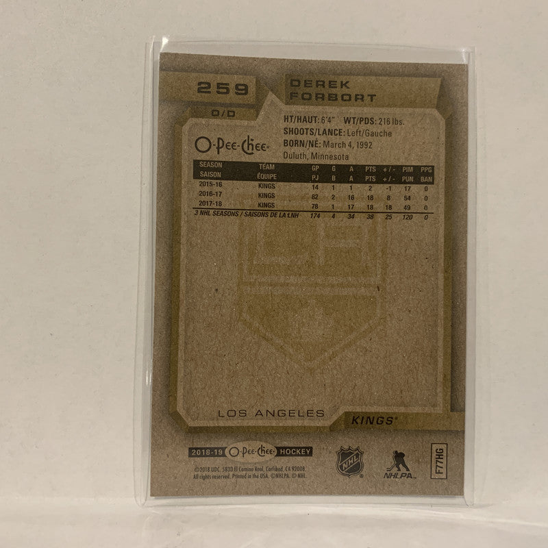 #259 Derek Forbort Los Angeles Kings 2018-19 O-Pee-Chee Hockey Card A2E