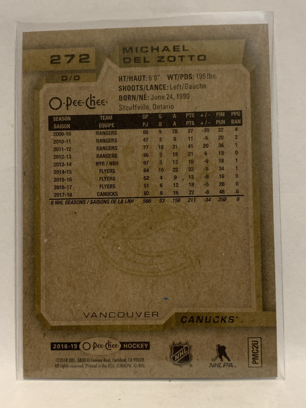 #272 Michael Del Zotto Vancouver Canucks 2018-19 O-Pee-Chee Hockey Card NHL