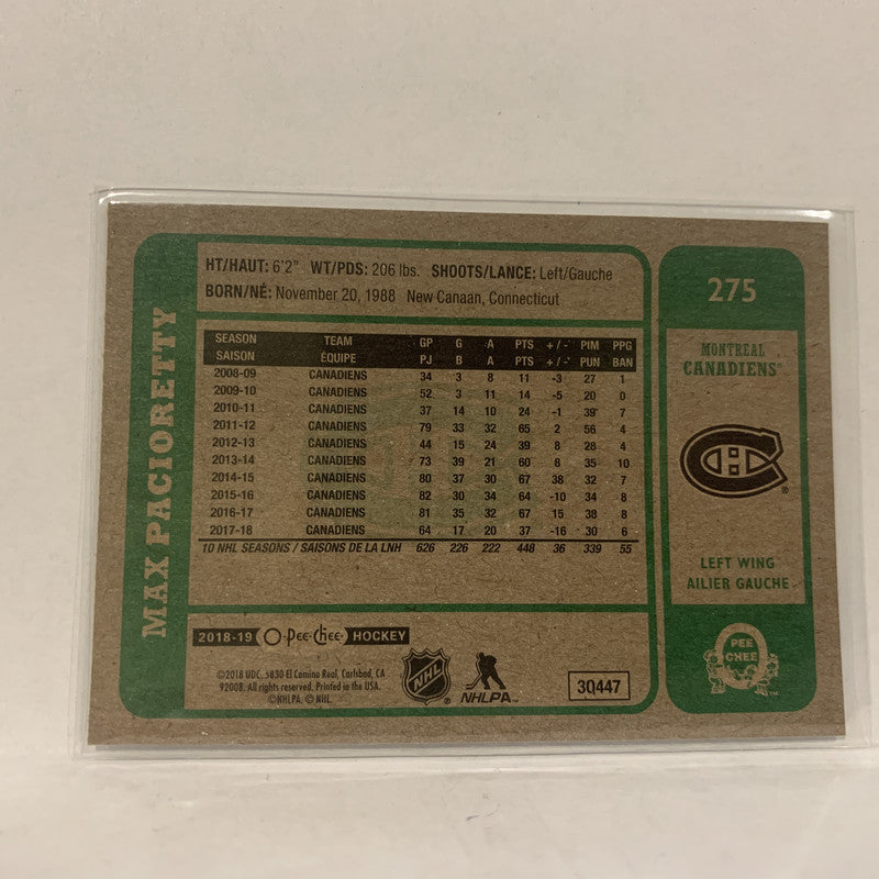 #275 Max Pacioretty Montreal Canadiens 2018-19 O-Pee-Chee Hockey Card A2C
