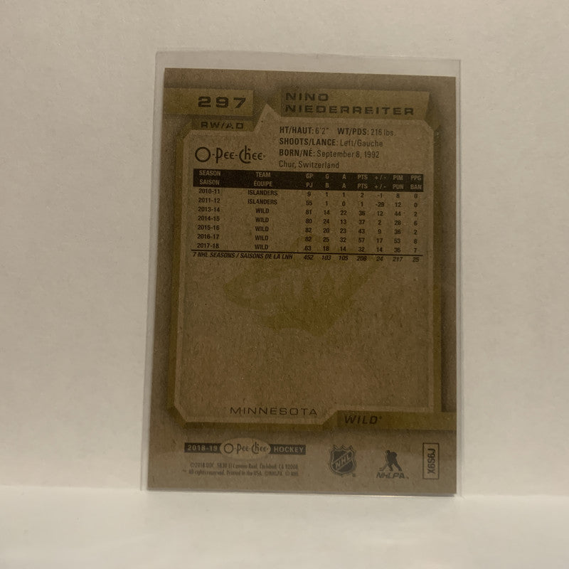 #297 Nino Niederreiter Minnesota Wild 2018-19 O-Pee-Chee Hockey Card JK
