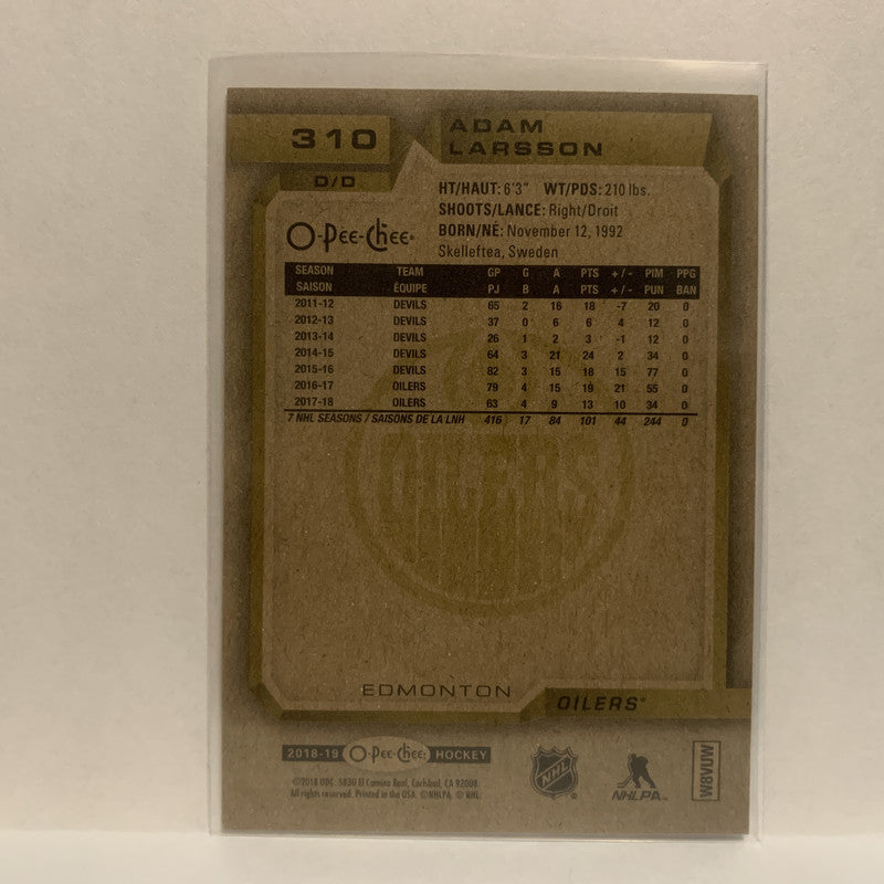 #310 Adam Larsson Edmonton Oilers 2018-19 O-Pee-Chee Hockey Card JS