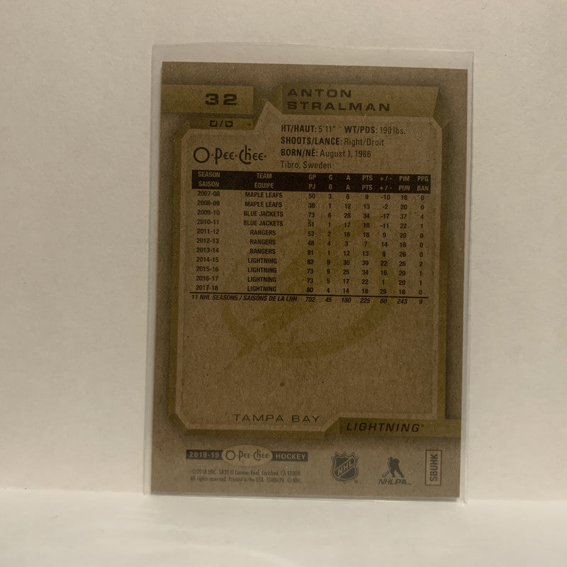 #32 Anton Stralman Tampa Bay Lightning 2018-19 O-Pee-Chee Hockey Card JS