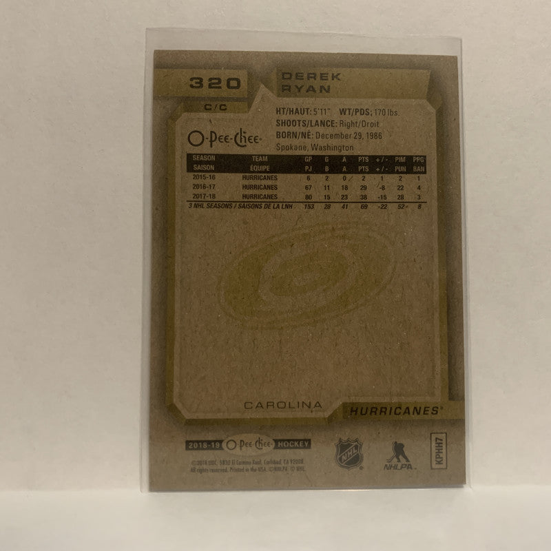 #320 Derek Ryan Carolina Hurricanes 2018-19 O-Pee-Chee Hockey Card JJ
