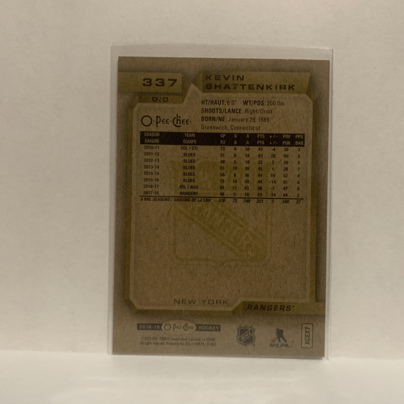 #337 Kevin Shattenkirk New York Rangers 2018-19 O-Pee-Chee Hockey Card JQ