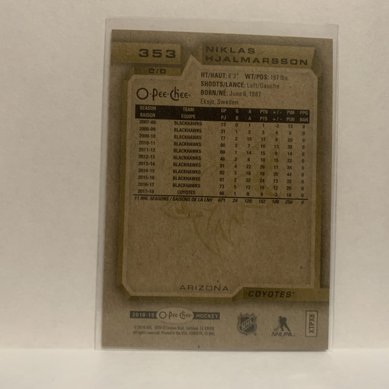 #353 Niklas Hjalmarsson Arizona Coyotes 2018-19 O-Pee-Chee Hockey Card JM