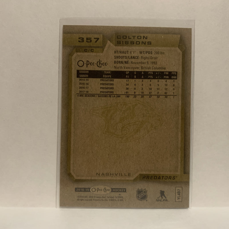 #357 Colton Sissons Nashville Predators 2018-19 O-Pee-Chee Hockey Card JM