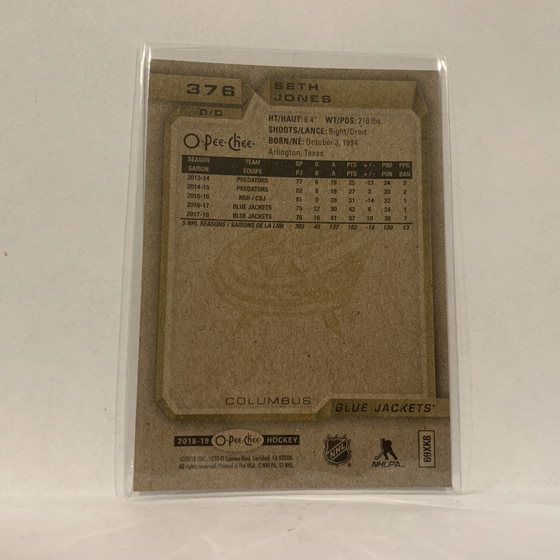 #376 Seth Jones Columbus Blue Jackets 2018-19 O-Pee-Chee Hockey Card A2B