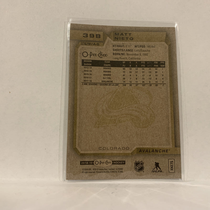 #398 Matt Nieto Colorado Avalanche 2018-19 O-Pee-Chee Hockey Card A2B