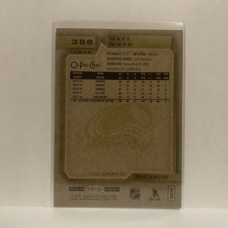 #398 Matt Nieto Colorado Avalanche 2018-19 O-Pee-Chee Hockey Card JQ