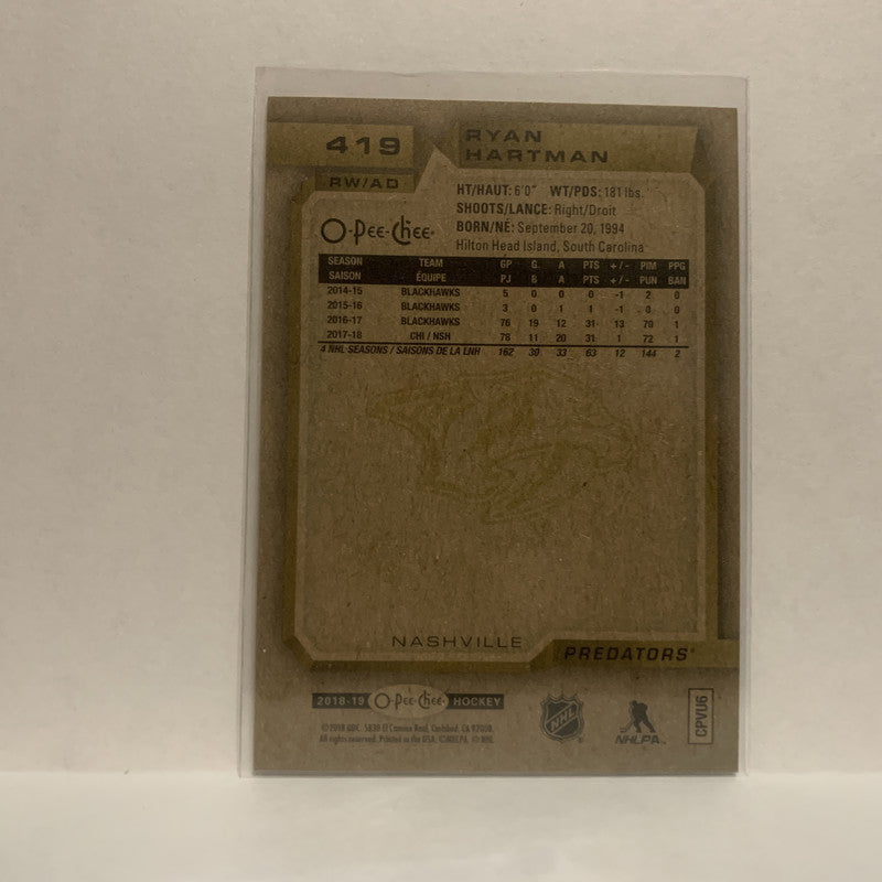 #419 Ryan Hartman Nashville Predators 2018-19 O-Pee-Chee Hockey Card JL