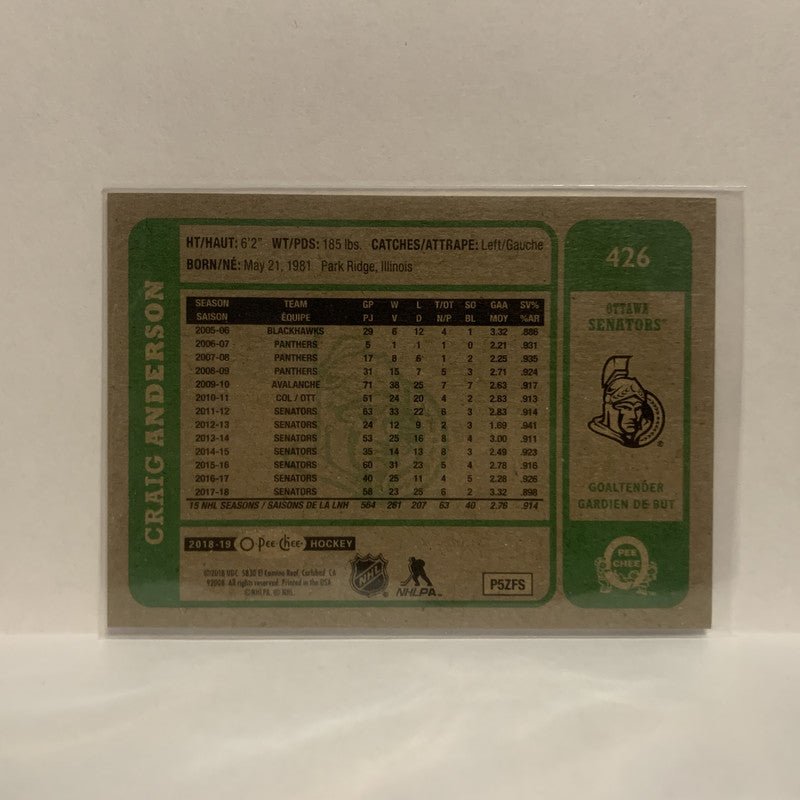 #426 Craig Anderson Ottawa Senators 2018-19 O-Pee-Chee Hockey Card JQ