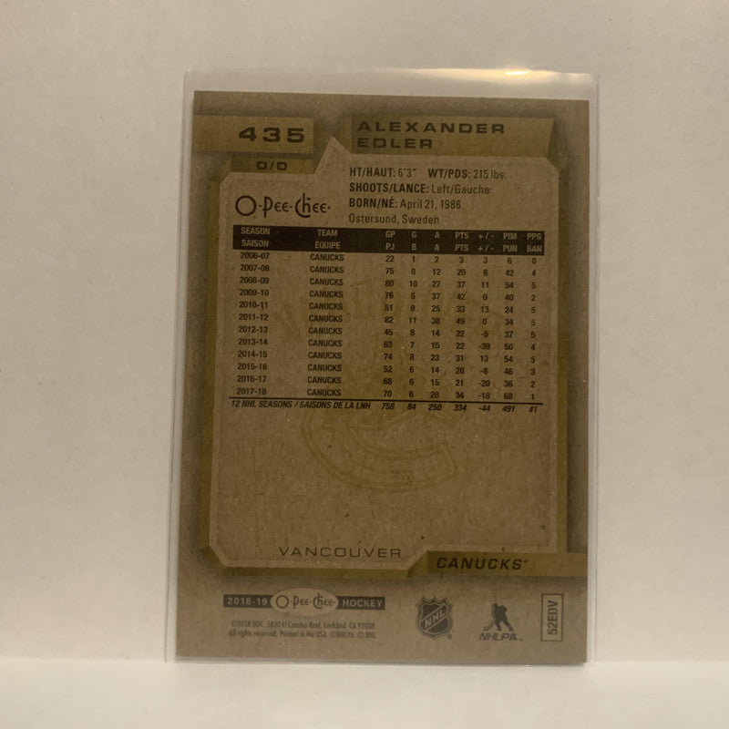 #435 Alexander Edler Vancouver Canucks 2018-19 O-Pee-Chee Hockey Card JO