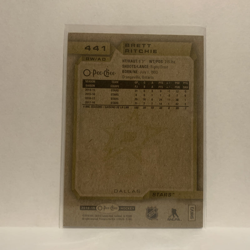 #441 Brett Ritchie Dallas Stars 2018-19 O-Pee-Chee Hockey Card JK