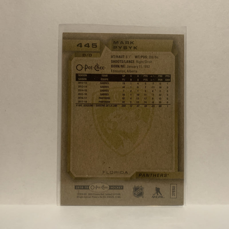 #445 Mark Pysyk Florida Panthers 2018-19 O-Pee-Chee Hockey Card JN