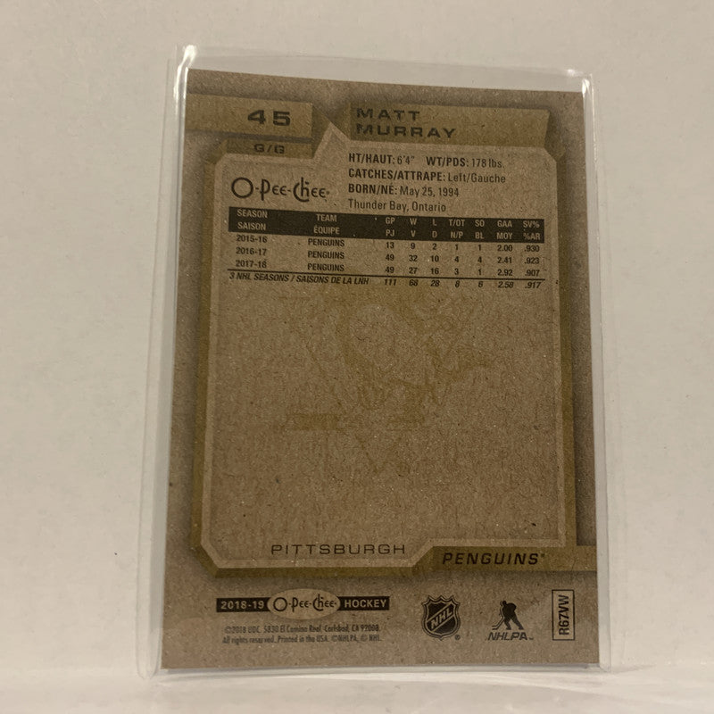 #45 Matt Murray Pittsburgh Penguins 2018-19 O-Pee-Chee Hockey Card A2D