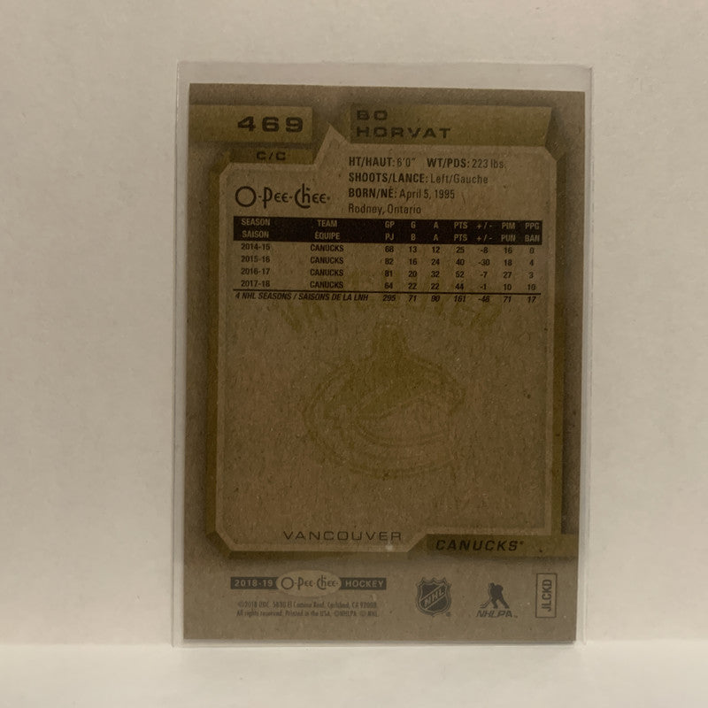 #469 Bo Horvat Vancouver Canucks 2018-19 O-Pee-Chee Hockey Card JM