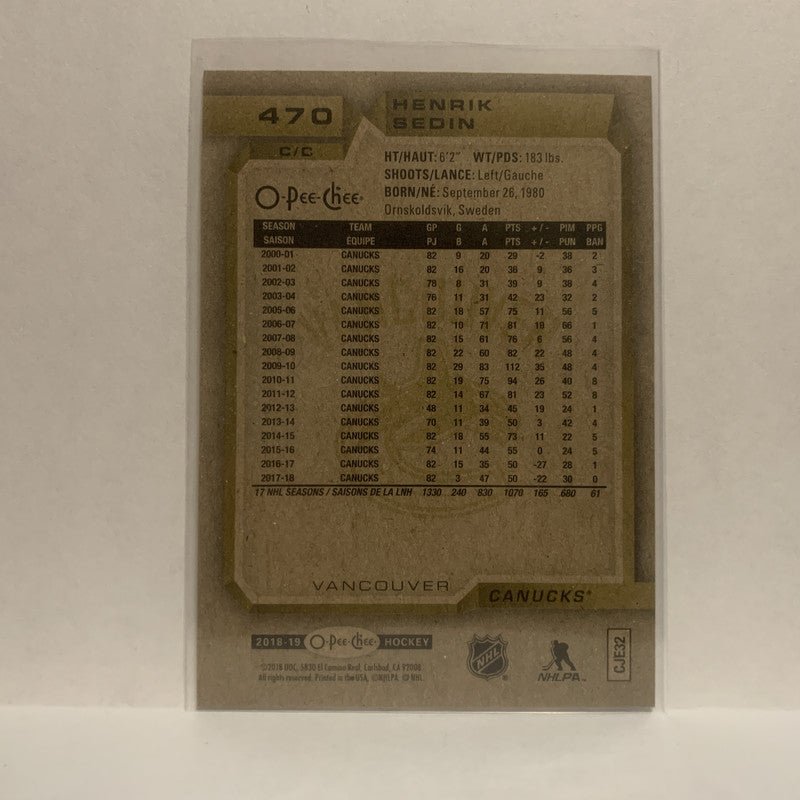 #470 Henrik Sedin Vancouver Canucks 2018-19 O-Pee-Chee Hockey Card JK