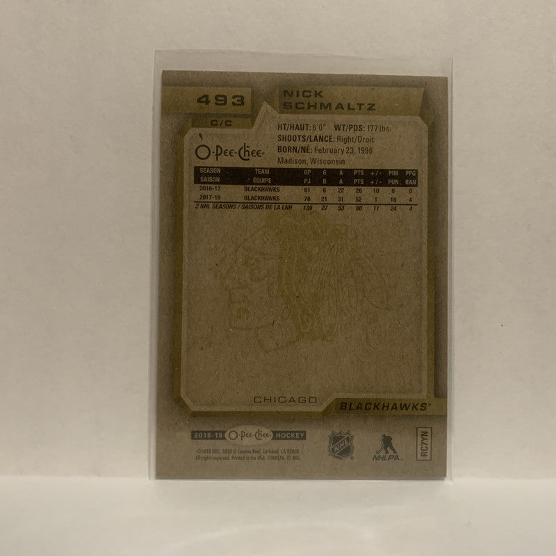 #493 Nick Schmaltz Chicago Blackhawks 2018-19 O-Pee-Chee Hockey Card JT