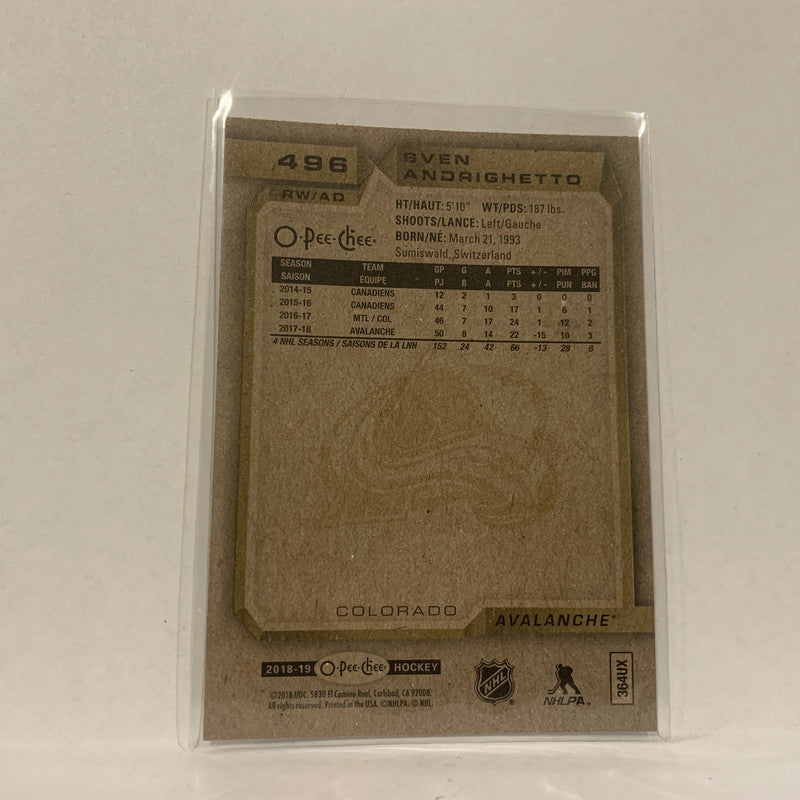 #496 Even Andrighetto Colorado Avalanche 2018-19 O-Pee-Chee Hockey Card A2C
