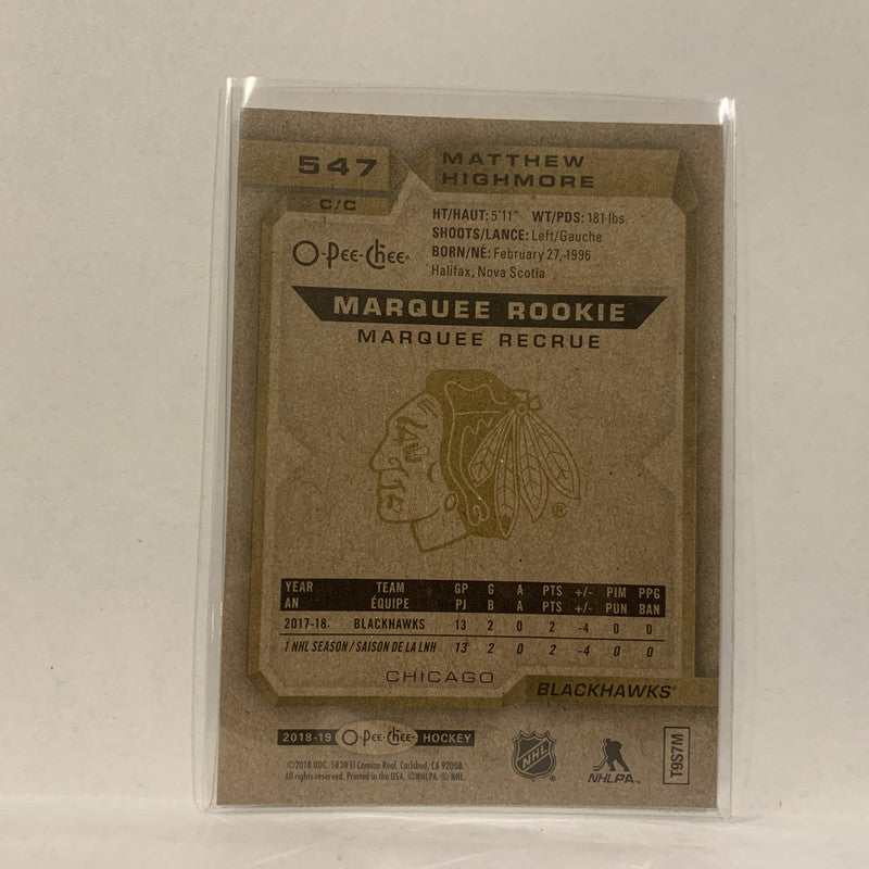 #547 Matthew Highmore Chicago Blackhawks Marquee Rookie 2018-19 O-Pee-Chee Hockey Card A2E