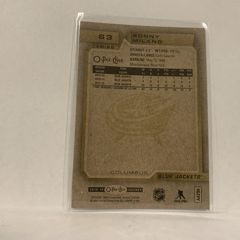 #63 Sonny Milano Columbus Blue Jackets 2018-19 O-Pee-Chee Hockey Card A2D