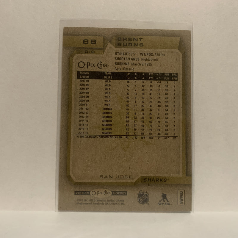#68 Brent Burns San Jose Sharks All Star 2018-19 O-Pee-Chee Hockey Card JM