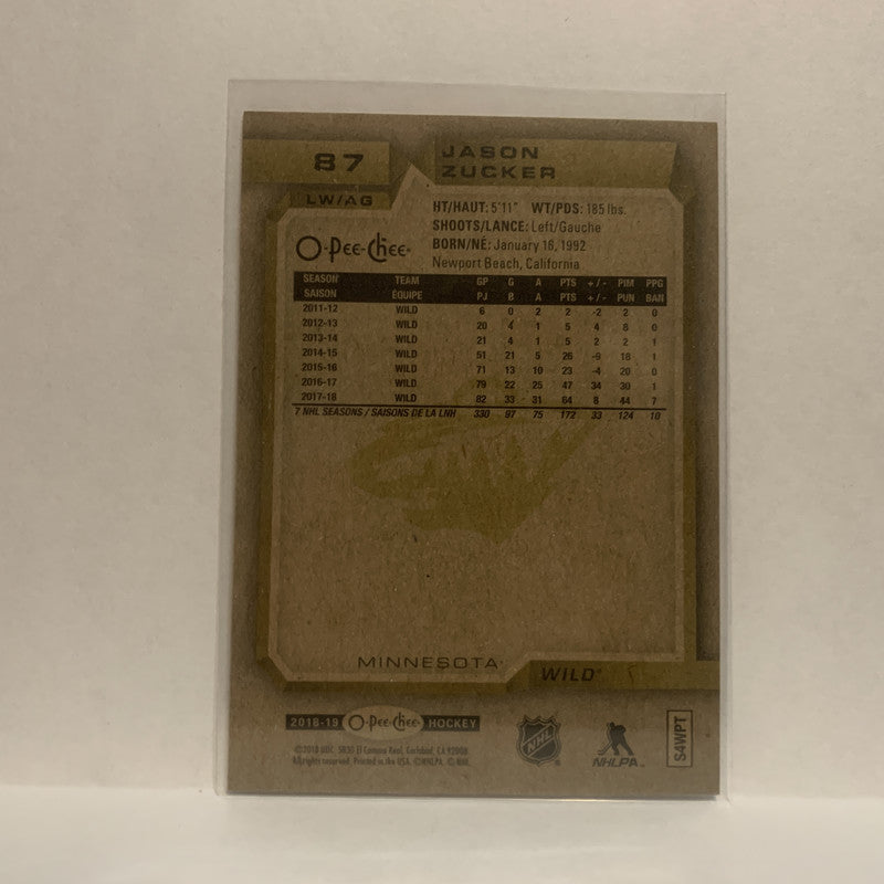 #87 Jason Zucker Minnesota Wild 2018-19 O-Pee-Chee Hockey Card JL