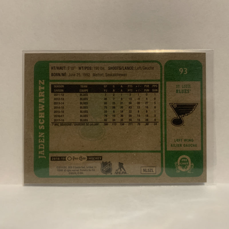 #93 Jaden Schwartz St Louis Blues 2018-19 O-Pee-Chee Hockey Card JK