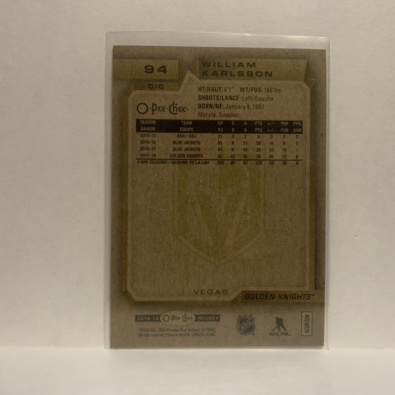 #94 William Karlsson Vegas Golden Knights 2018-19 O-Pee-Chee Hockey Card JS