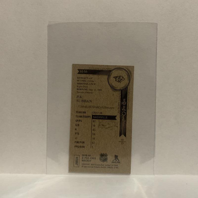 M-56 P.K. Subban Nashville Predators 2018-19 O-Pee-Chee Hockey Card JR