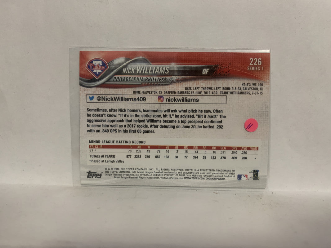 #226 Nick Williams Rookie Philadelphia Phillies 2018 Topps Series 1 Baseball Card NQ