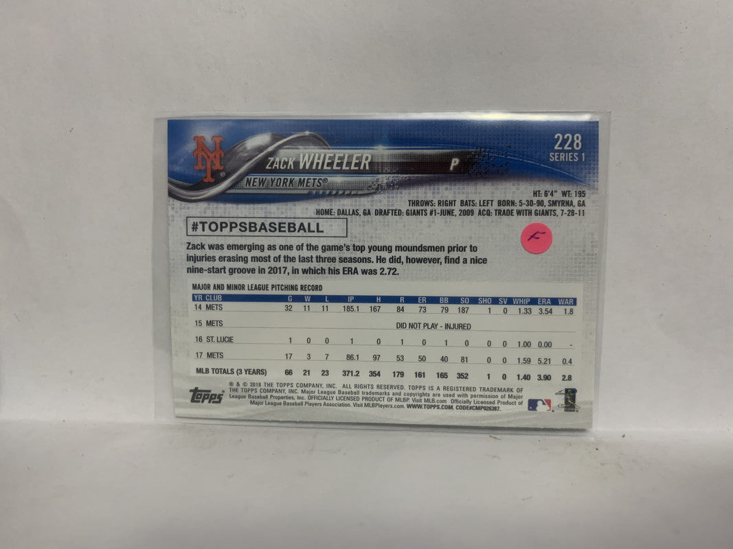 #228 Zack Wheeler New York Mets 2018 Topps Series 1 Baseball Card NQ