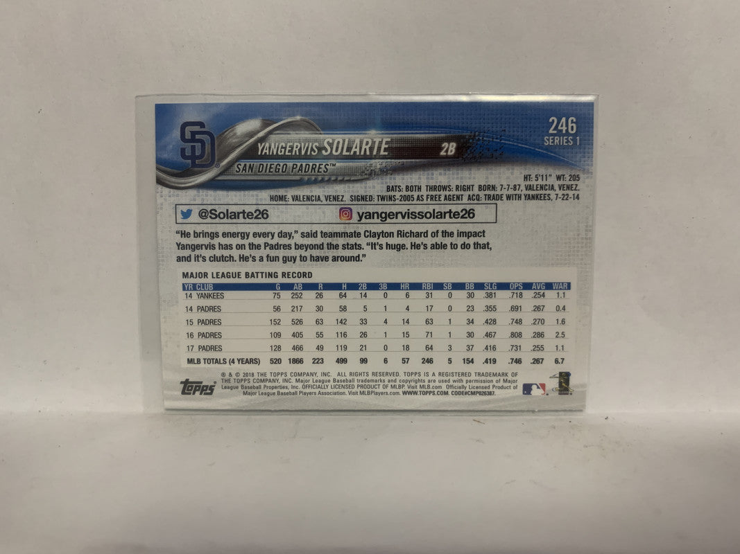 #246 Yangeruis Solarte San Diego Padres 2018 Topps Series 1 Baseball Card NP