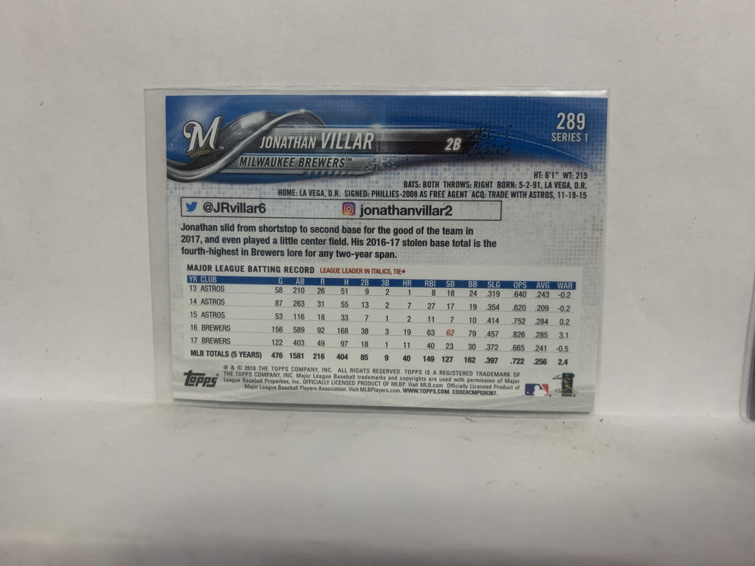 #289 Jonathan Viller Milwaukee Brewers 2018 Topps Series 1 Baseball Card NP