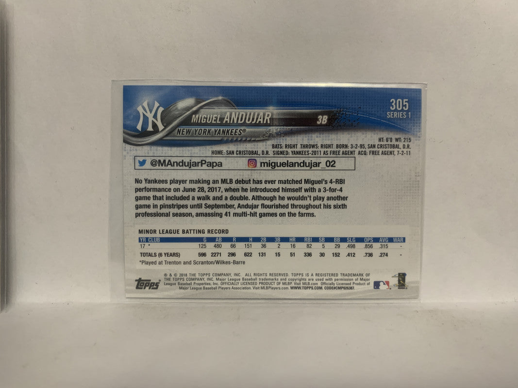 #305 Miguel Andujar Rookie New York Yankees 2018 Topps Series 1 Baseball Card NZB