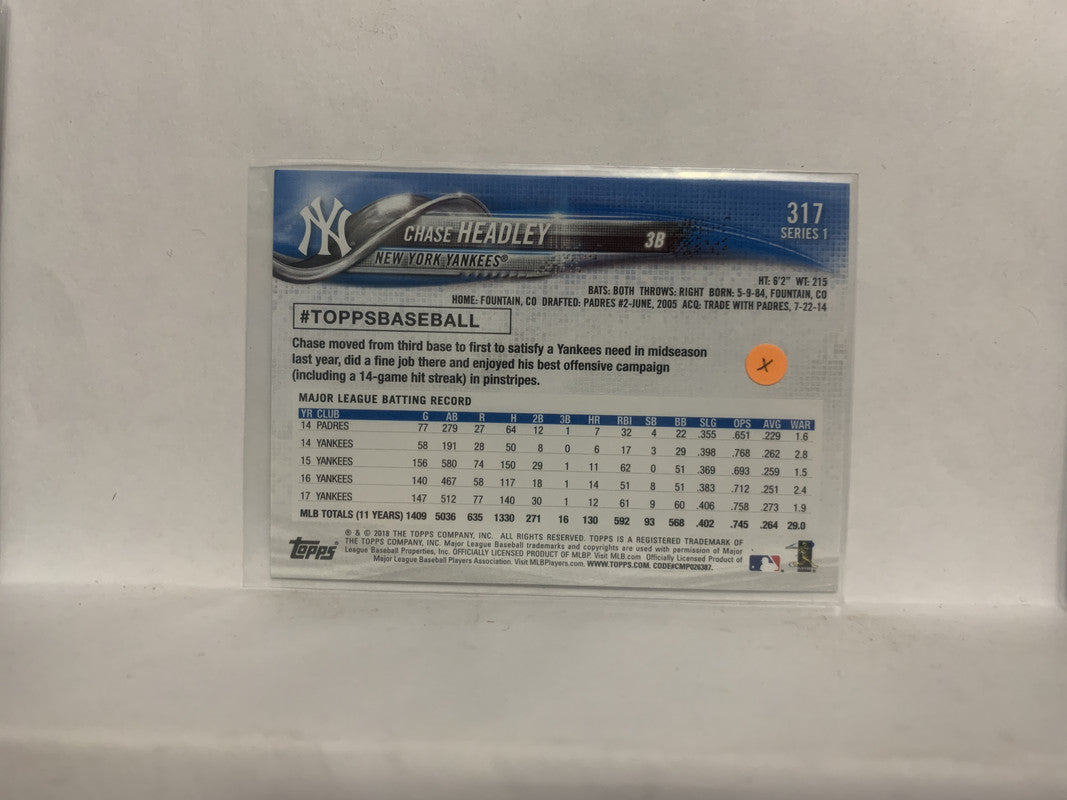 #317 Chase Headley New York Yankees 2018 Topps Series 1 Baseball Card NZC