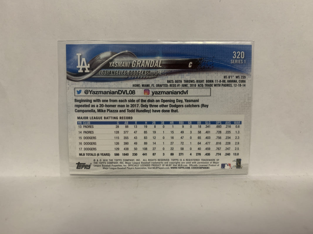 #320 Yasmani Grandal Los Angeles Dodgers 2018 Topps Series 1 Baseball Card NZ