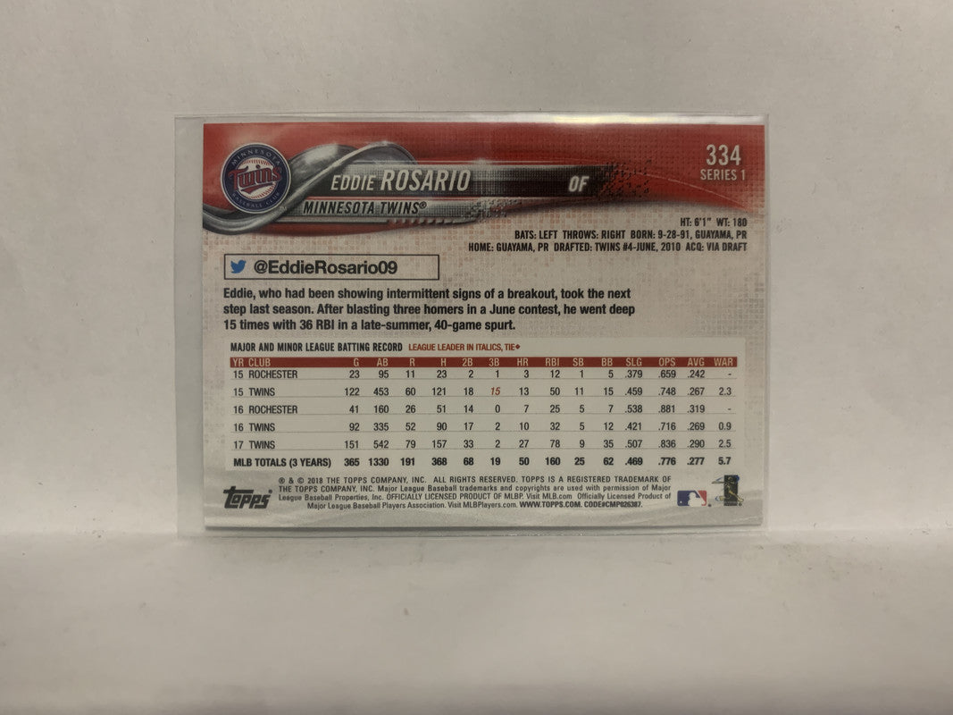 #334 Eddie Rosario Minnesota Twins 2018 Topps Series 1 Baseball Card NZA