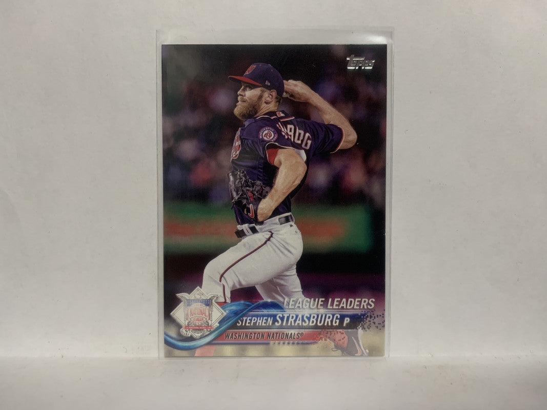 #335 Stephan Strasburg League Leaders Washington Nationals 2018 Topps Series 1 Baseball Card NZ