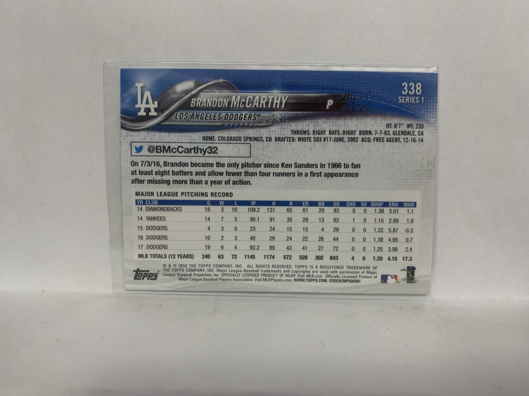 #338 Brandon McCarthy Los Angeles Dodgers 2018 Topps Series 1 Baseball Card NZ