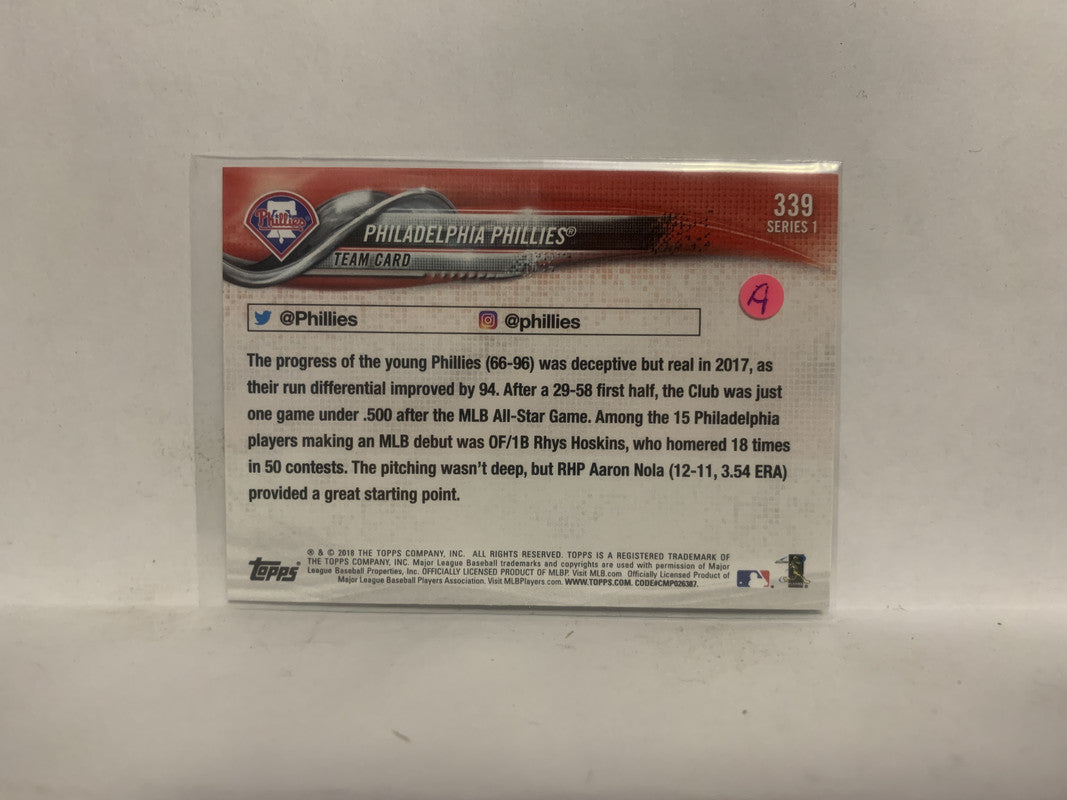 #339 Team Card Philadelphia Phillies 2018 Topps Series 1 Baseball Card NS